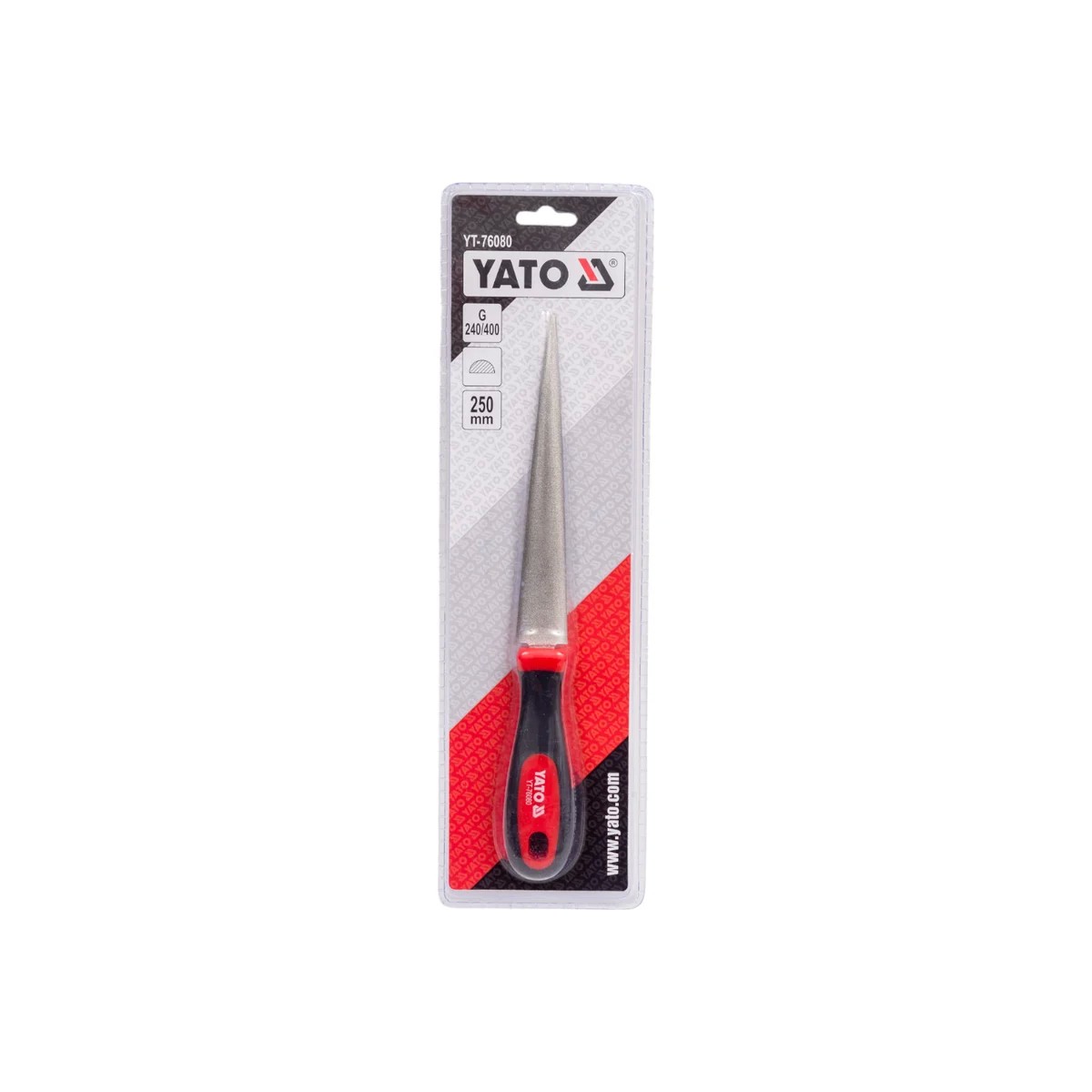 Алмазный напильник с рабочей длиной 150 мм. Полукруглый, конический профиль имеет два размера зернистости 240 и 400. Двухкомпонентная пластиковая ручка.