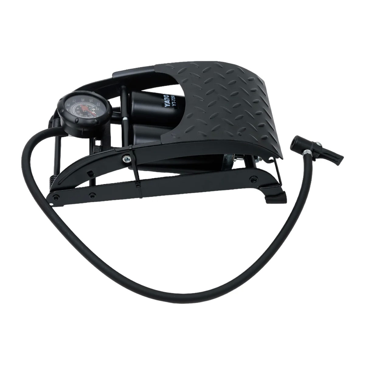 Ножной двойной насос с манометром YATO YT-7350 используется для накачки воздухом шин машин, велосипедов, мячей.