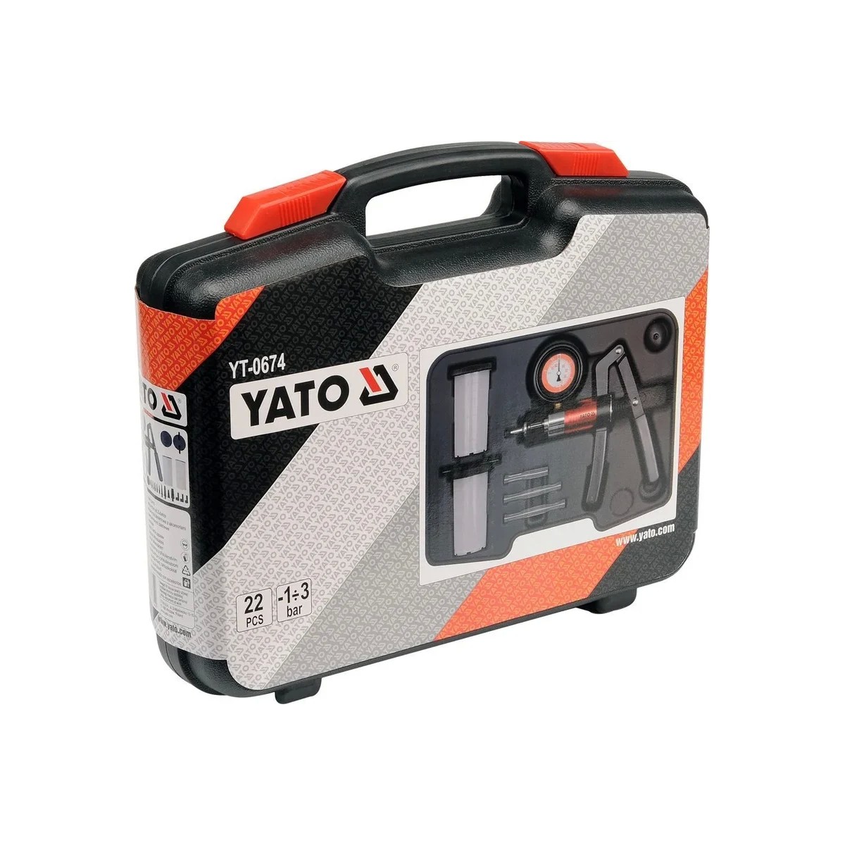 Вакуумный насос с принадлежностями YATO 22 предмета, пластиковый кейс YT-0674 является многофункциональным устройством, предназначенным для диагностики систем в автомобилях и технике, действие которых основано на давлении или под вакуумом. В набор входят аксессуары, позволяющие использовать его практически в любом двигателе или системе. Диапазон измерения: от -1 до 3 бар. С помощью отжиманий можно провести диагностику следующих систем: устройства компьютерного управления двигателя, устройства управления зажиганием, тормозных систем и многого другого.