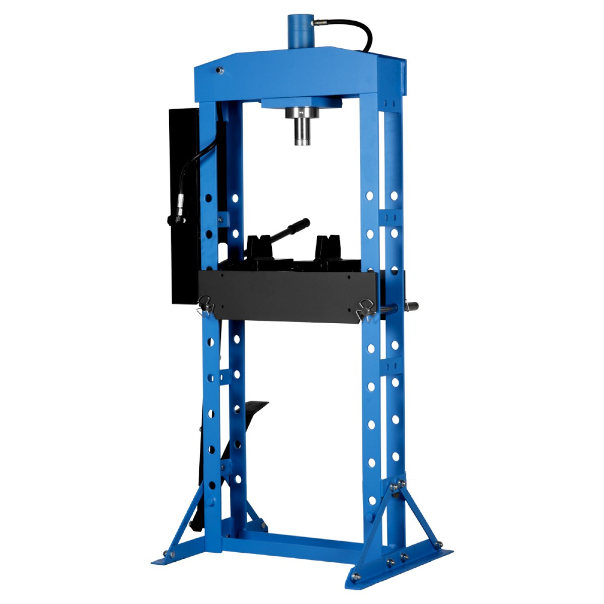 Напольный гидравлический пресс с ножным приводом и сварной рамой, который развивает усилие в 20 тонн.