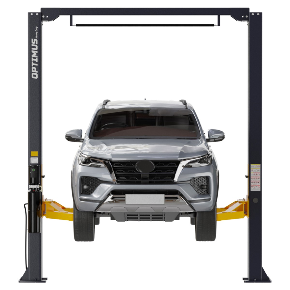 Двухстоечный подъемник с верхней синхронизацией OPTIMUS OPT-5W/220 грузоподъемностью 4000 кг. Отличается высокой надежностью конструкции: профессиональный форм-фактор подъемных кареток, стальные шкивы (сталь 45), концевой ограничитель подъема, асимметричные подъемные лапы, увеличенная опорная платформа колонн 485 х 405 мм (на 5% шире аналогов). На подъемных каретках предусмотрена резиновая защита увеличенного размера, которая позволяет минимизировать риск повреждения двери автомобиля при открытии. Управление стопорами осуществляется с двух колонн. Наличие концевого ограничителя подъема обеспечивает дополнительную безопасность во время эксплуатации подъемника. Конфигурация подъемника позволяет обслуживать все самые популярные типы автомобилей: от А-класса до микроавтобусов.