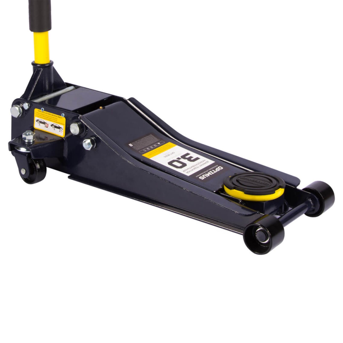 Гидравлический подкатной домкрат OPTIMUS OPT-8050 грузоподъемностью 3000 кг. Применяется для профессионального использования в шиномонтажных мастерских. Благодаря увеличенным колесам устройство быстро и легко перемещается. Он имеет низкопрофильную конструкцию, что позволяет использовать его для работы с автомобилями с низкой посадкой. Двухштоковый механизм обеспечивает быстрый подъем груза, так как домкрат оснащен системой быстрого подъема рабочей части Quick Lift. Надёжный карданный механизм привода обеспечивает точное управление нагрузкой в любом положении ручки. Ручка управления располагается в мягкой трубке, для предотвращения случайного повреждения автомобиля. Корпус домкрата выполнен из металла, что обеспечивает его прочность и долговечность.