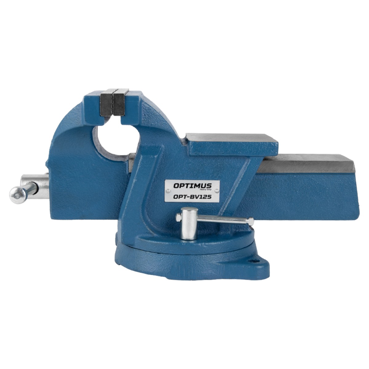 Профессиональные слесарные тиски OPTIMUS OPT-BV125 с наковальней, стальными губками 125 мм и рабочим ходом до 128 мм. Данные слесарные тиски представляют собой универсальное слесарное приспособление, используемое для выполнения различных слесарных работ в мастерских сервисных центров, ремонтных предприятиях, а также на средних и малых производствах. Основными преимуществами данной модели являются чугунный корпус и механизм поворота в горизонтальной плоскости, обеспечивающий удобное позиционирование деталей. В конструкции предусмотрена наковальня для выполнения различных слесарных работ. Для придания повышенной коррозионной стойкости неподвижные детали инструмента покрыты защитно-декоративным покрытием.