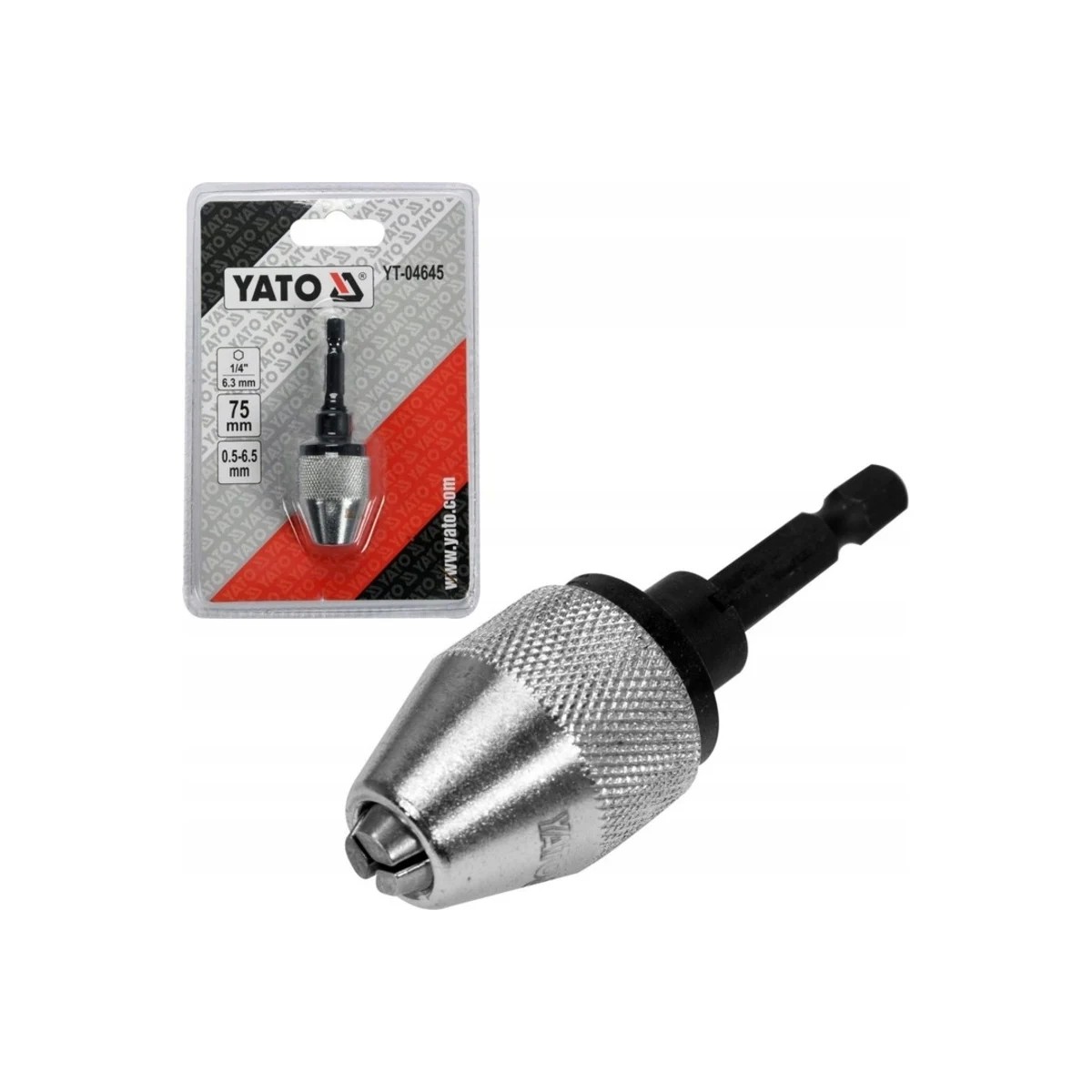 Быстрозажимной сверлильный патрон YATO без ключа, предназначенный для шуруповертов с шестигранной головкой 1/4".