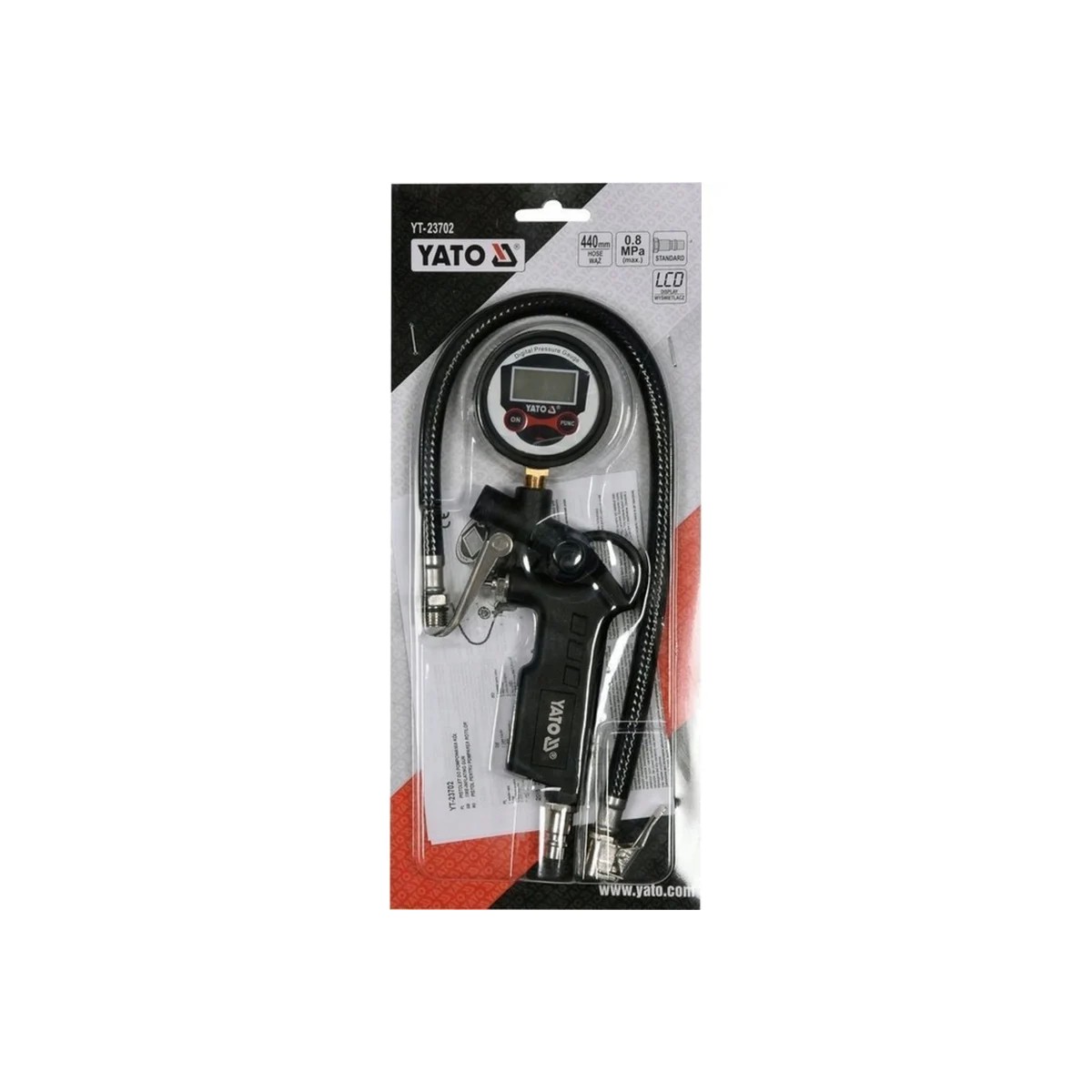 Пистолет для накачивания колес YATO YT-23702 - это профессиональный напорный пистолет с жидкокристаллическим экраном для заполнения шин и камер с помощью клапана сжатым воздухом.