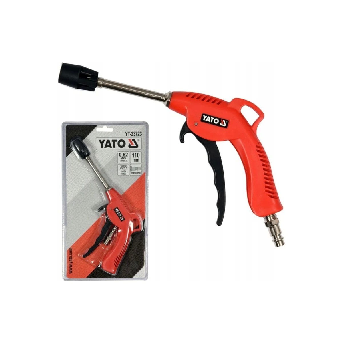 Пистолет для продувки YATO Турбо-длинный YT-23723 идеально подходит для удаления грязи, пыли и грязи с машин, устройств и двигателей, а также для охлаждения и сушки различных типов поверхностей.