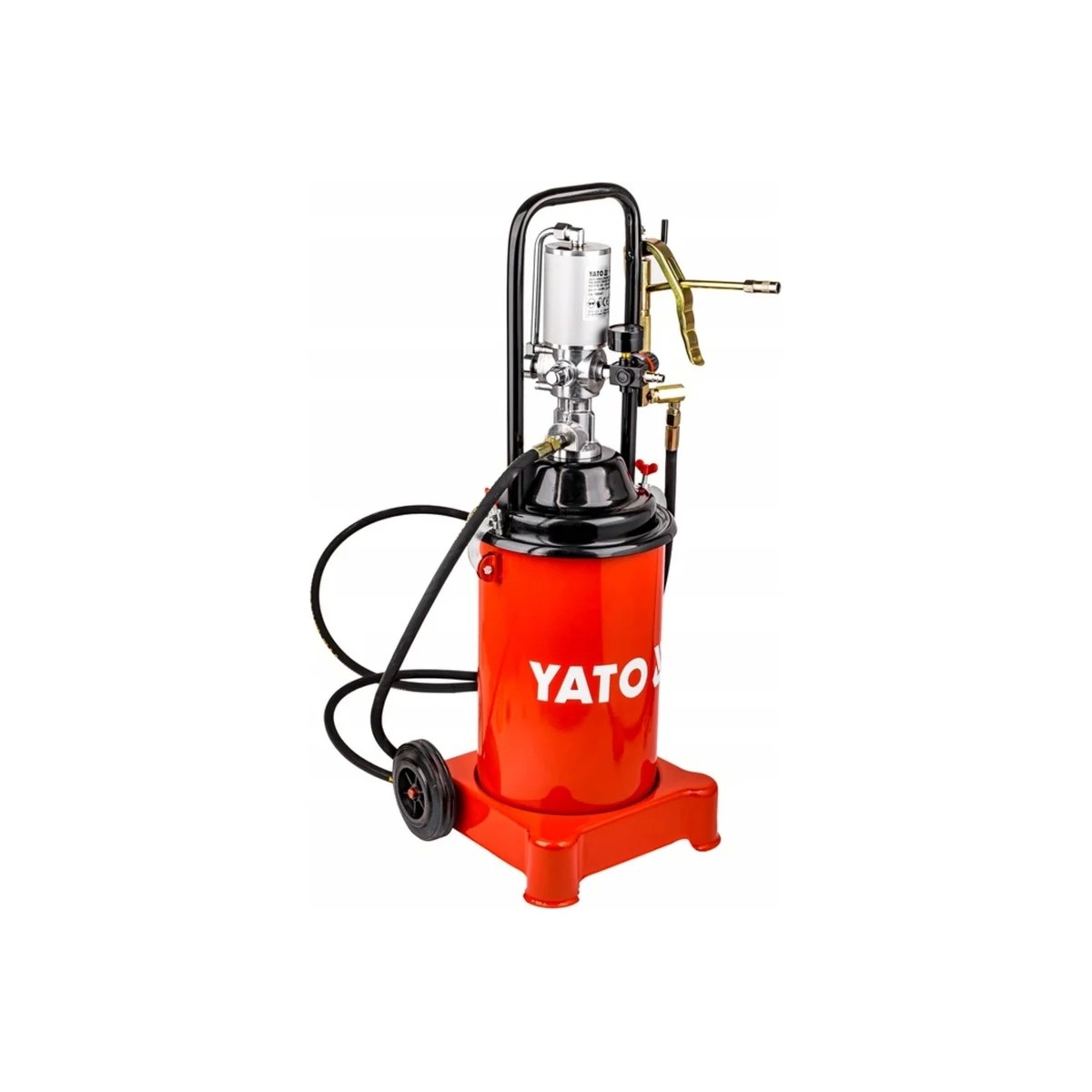 Пневматический нагнетатель консистентной смазки YATO YT-07067 выполняет снабжение различных механизмов и оборудования солидолом. Применение данного агрегата значительно снижает трудозатраты рабочих, что увеличивает их производительность. Модель оснащена вместительным баком -12 л, отличается высокой скоростью подачи рабочей жидкости. Смазочный пистолет имеет специальный клапан который исключает случайную подачу рабочей жидкости.