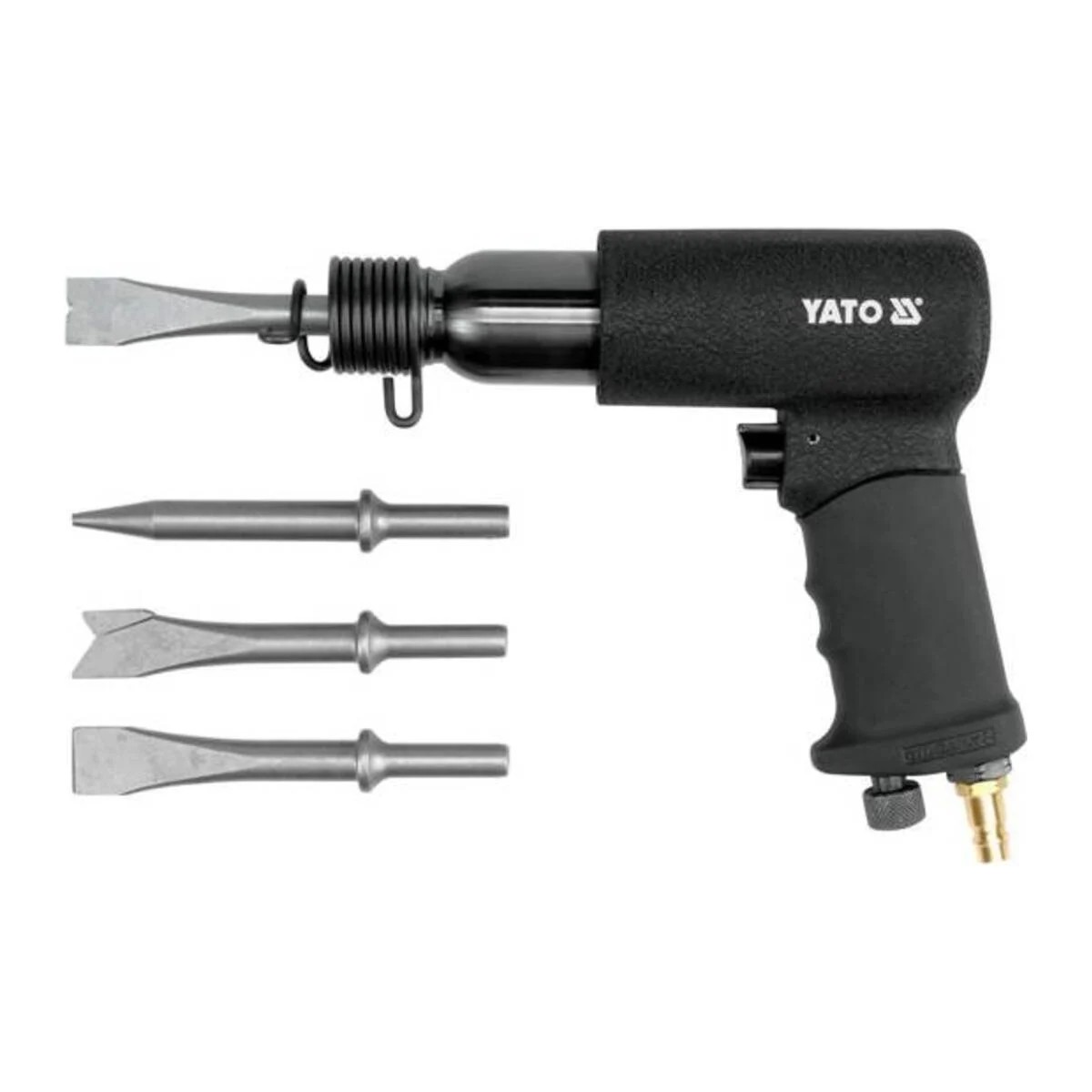 Пневматический отбойный молоток YATO YT-0990 – устройство, питающееся струёй сжатого воздуха под соответствующим давлением. С помощью инструментов типа долото, шлямбур, зубило можно разрезать и пробивать любые предметы из металла, бетона и т.д. Правильная, безотказная и безопасная работа устройства зависит от правильной эксплуатации. Перед началом работы с инструментом необходимо детально ознакомиться с инструкцией.