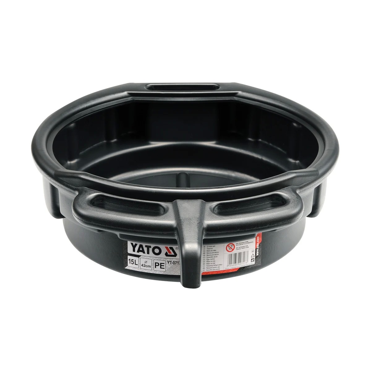 Чаша для слива отработанного масла или других рабочих жидкостей. Изготовлена из полипропилена, имеет ручки для переноски и профилированное место для заливки.