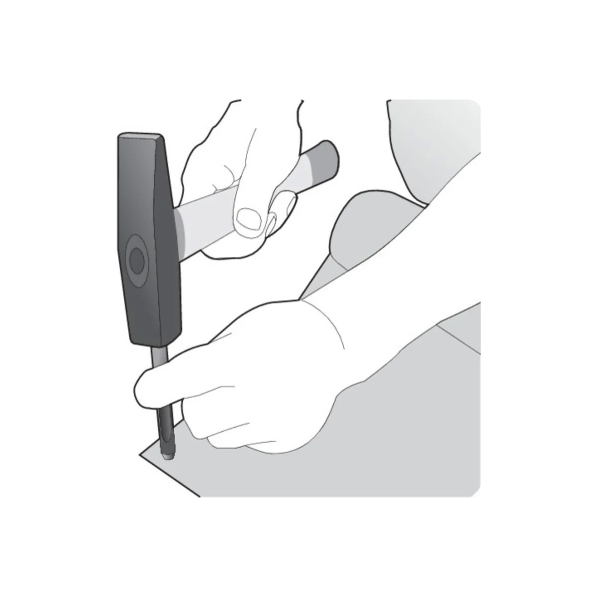 При ударе молотка заостренная кромка, приложенная к материалу, прорезает в нем отверстие.