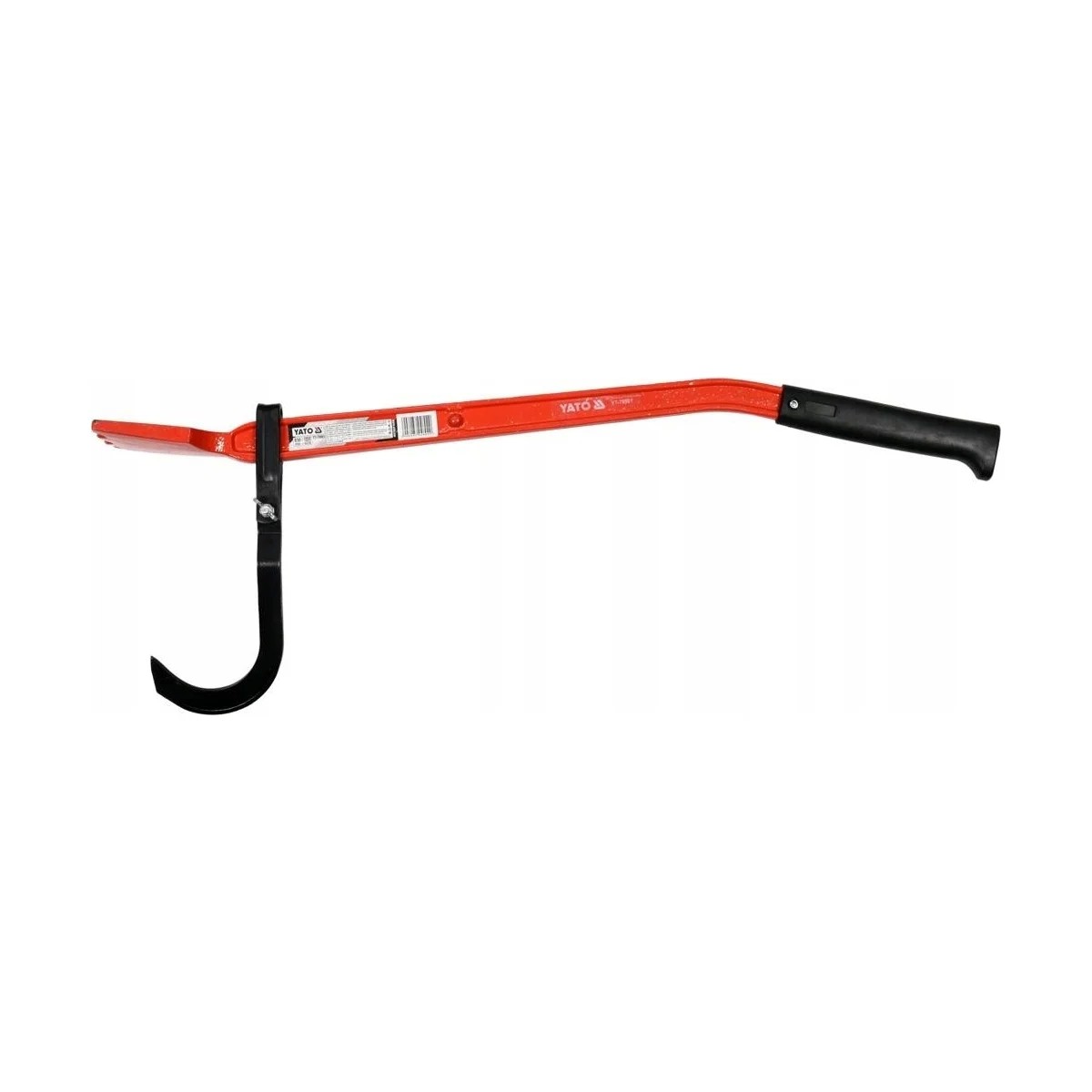 Рычаг с крюком используется для подъема и перемещения бревен, длина 830 мм. Изготовлен из кованой стали, поверхность лакированная. Рычаг заканчивается большим колеблющимся стальным крюком длиной 200 мм. Ручка покрыта пластиком, ширина рабочей части 90 мм, средняя толщина 14 мм. Применяется для перемещения бревен в лесных и садовых работах.