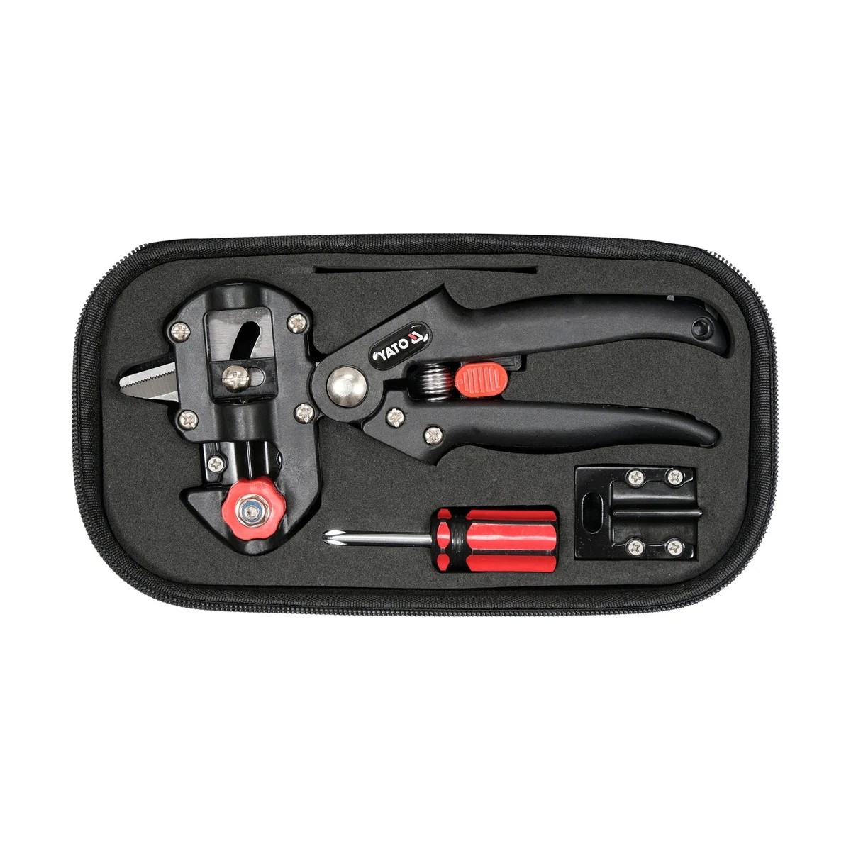 Секаторы для прививки деревьев, кустарников и виноградных лоз, а также для выполнения точных срезов. Высококачественное лезвие обеспечивает гладкую режущую поверхность. Механизм блокировки лезвия гарантирует безопасность во время работы. Эргономичная ручка обеспечивает комфортное использование. Секаторы и принадлежности помещены в прочный футляр.