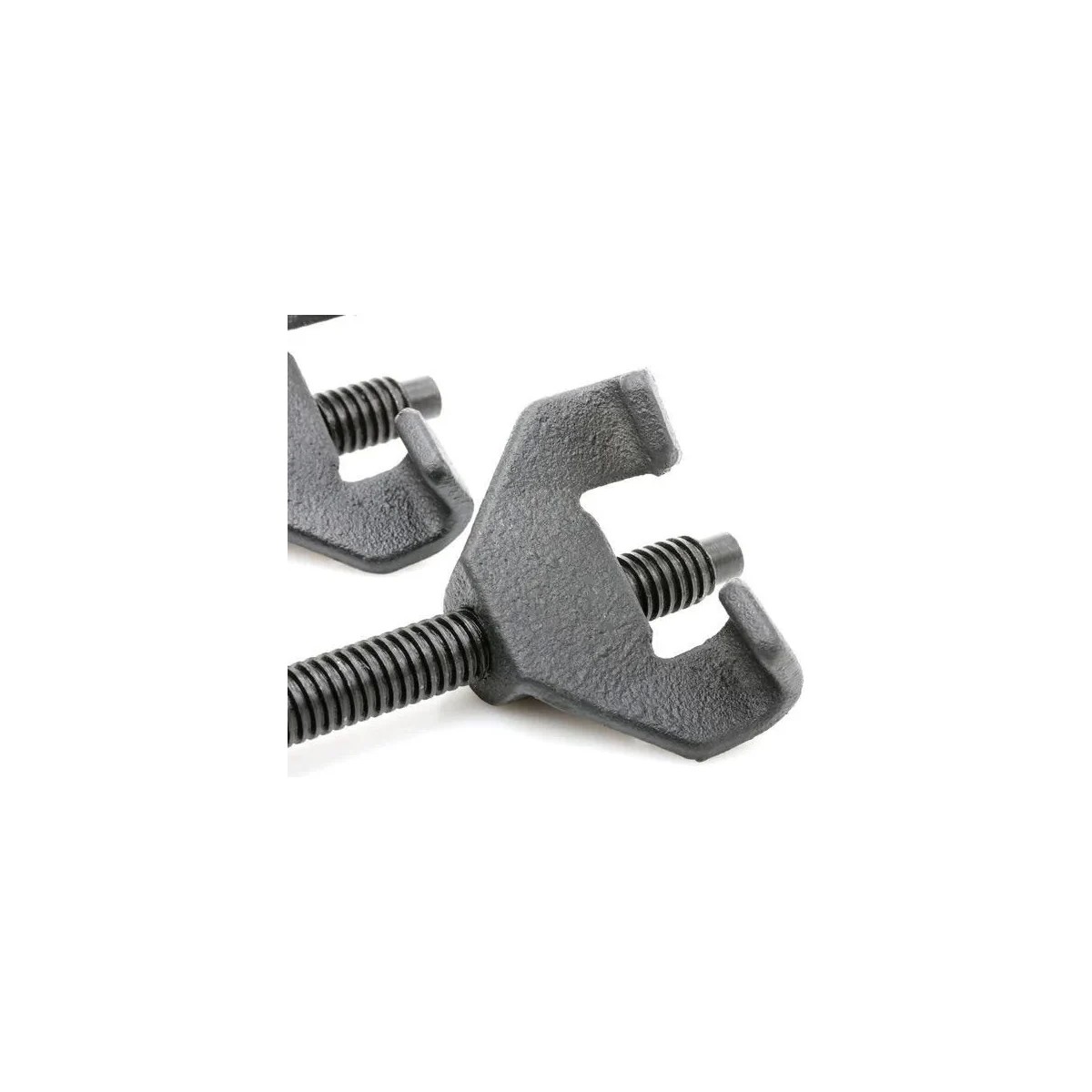 Съемник пружин YATO 82x280 мм, 2 шт. YT-2546 применяется для фиксации пружин подвески при обслуживании автомобиля. Приспособление изготовлено из стали, прошедшей воронение, что эффективно защищает инструмент от коррозии. Съемник имеет усиленную конструкцию, оснащен двойными крюками, позволяющими надежно фиксировать пружину во время ее снятия.