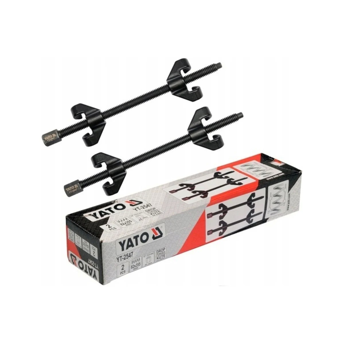 Съемник пружин YATO 82x355 мм, 2 шт. YT-2547 применяется для фиксации пружин подвески при обслуживании автомобиля. Приспособление изготовлено из стали, прошедшей воронение, что эффективно защищает инструмент от коррозии. Съемник имеет усиленную конструкцию, оснащен двойными крюками, позволяющими надежно фиксировать пружину во время ее снятия.