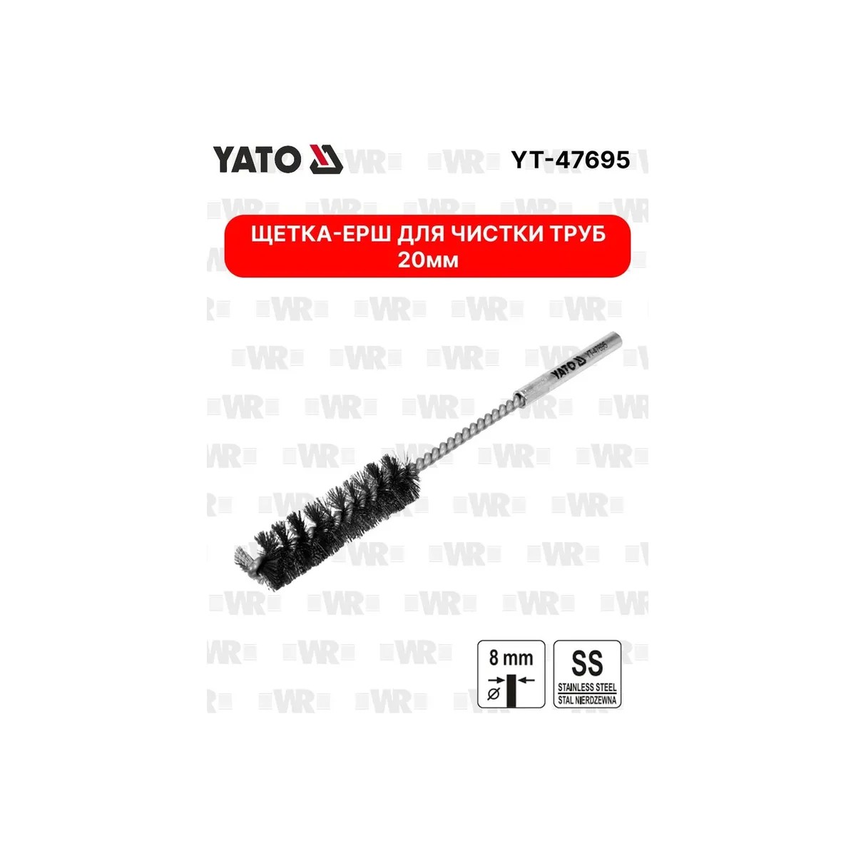 Цилиндрическая проволочная щетка YATO YT-47695 предназначена для очистки внутренних поверхностей труб, гнезд свечей зажигания и других труднодоступных мест от ржавчины, нагара и металлических опилок. Изготовлена из высококачественной нержавеющей стали, устойчива к коррозии и износу. Хвостовик диаметром 8 мм позволяет использовать щетку с дрелями и шуруповертами.