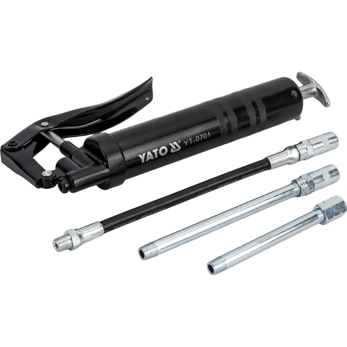 Шприц YATO для консистентной смазки 120 мл с жестким и гибким шлангом под запасную тубу YT-0701 широко используется в автосервисах для технического обслуживания автомобиля. Шприц необходим для замены масла в коробке передач, трансмиссии, деталях, куда нужно добавить небольшое количество масла. Приспособление удобно для подачи смазки в труднодоступные места узлов и агрегатов с помощью входящих в комплект стальной трубки или гибкого шланга. Шприц имеет высокую производительность и продолжительный срок службы. Вмещает 120 мл смазочного материала.
