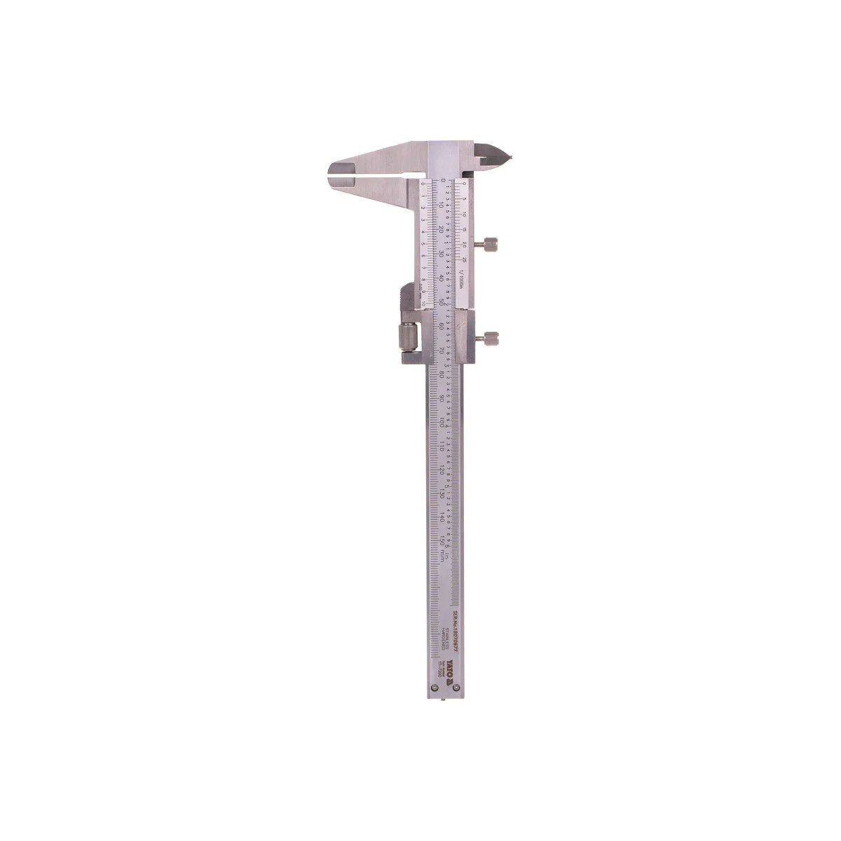 Штангенциркуль выполнен из нержавеющей стали. Инструмент устойчив к коррозии и истираниям.