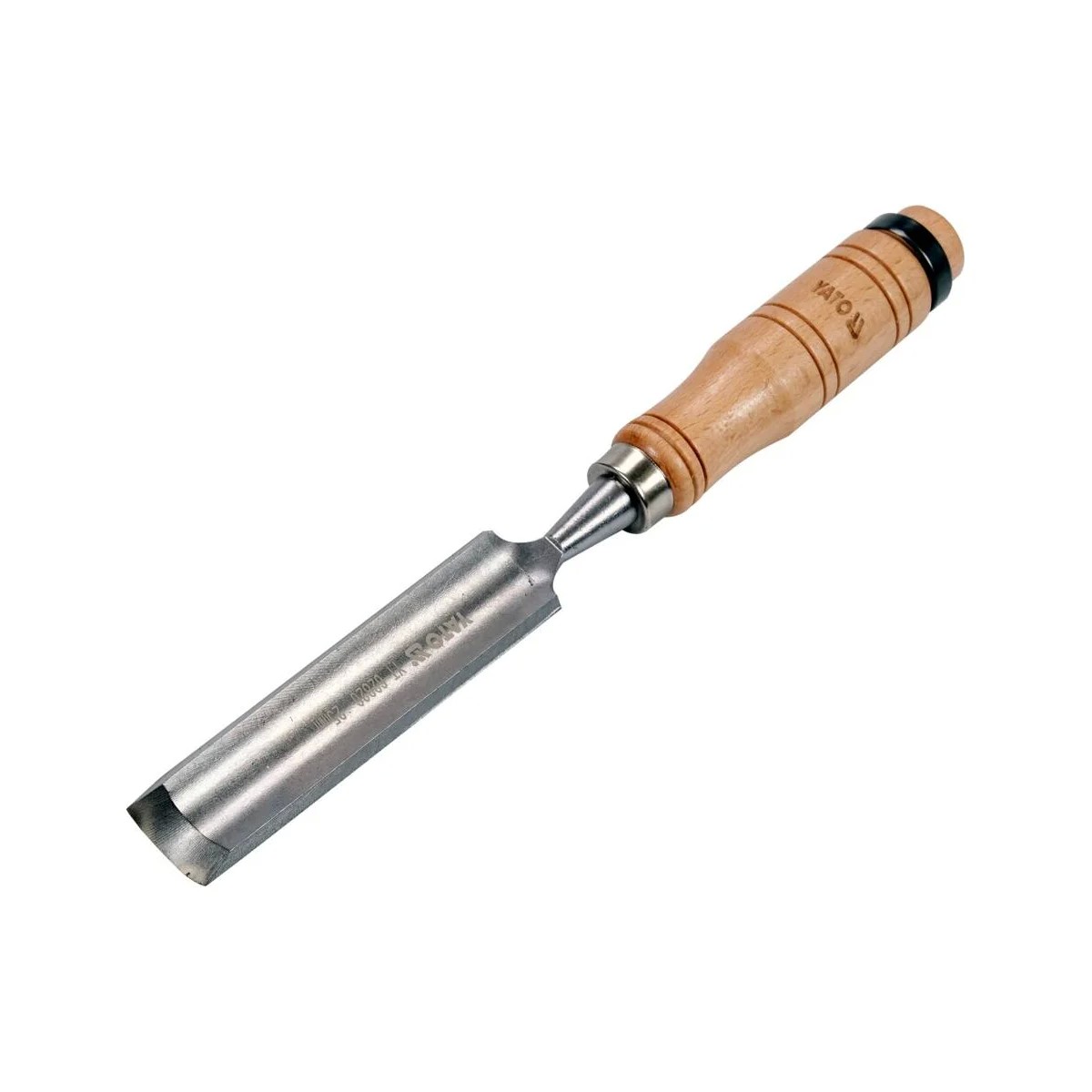Полукруглая стамеска по дереву 25 мм материал углеродистая сталь 55# , длина лезвия 125 мм , лакированная деревянная рукоять с металлическим наконечником - длина 112 мм Для обработки древесины и древесных материалов.