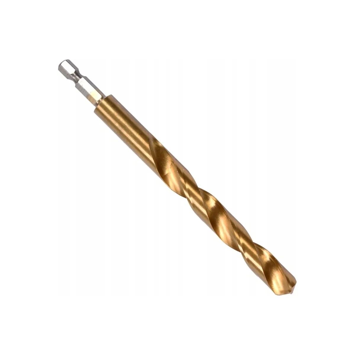 Сверло по металлу с титановым покрытием и шестигранным хвостовиком. Изготовлен из быстрорежущей стали HSS. Точка разделения позволяет сверлить без использования пуансона. Края сверла шлифуются. Угол вершины 135 градусов.