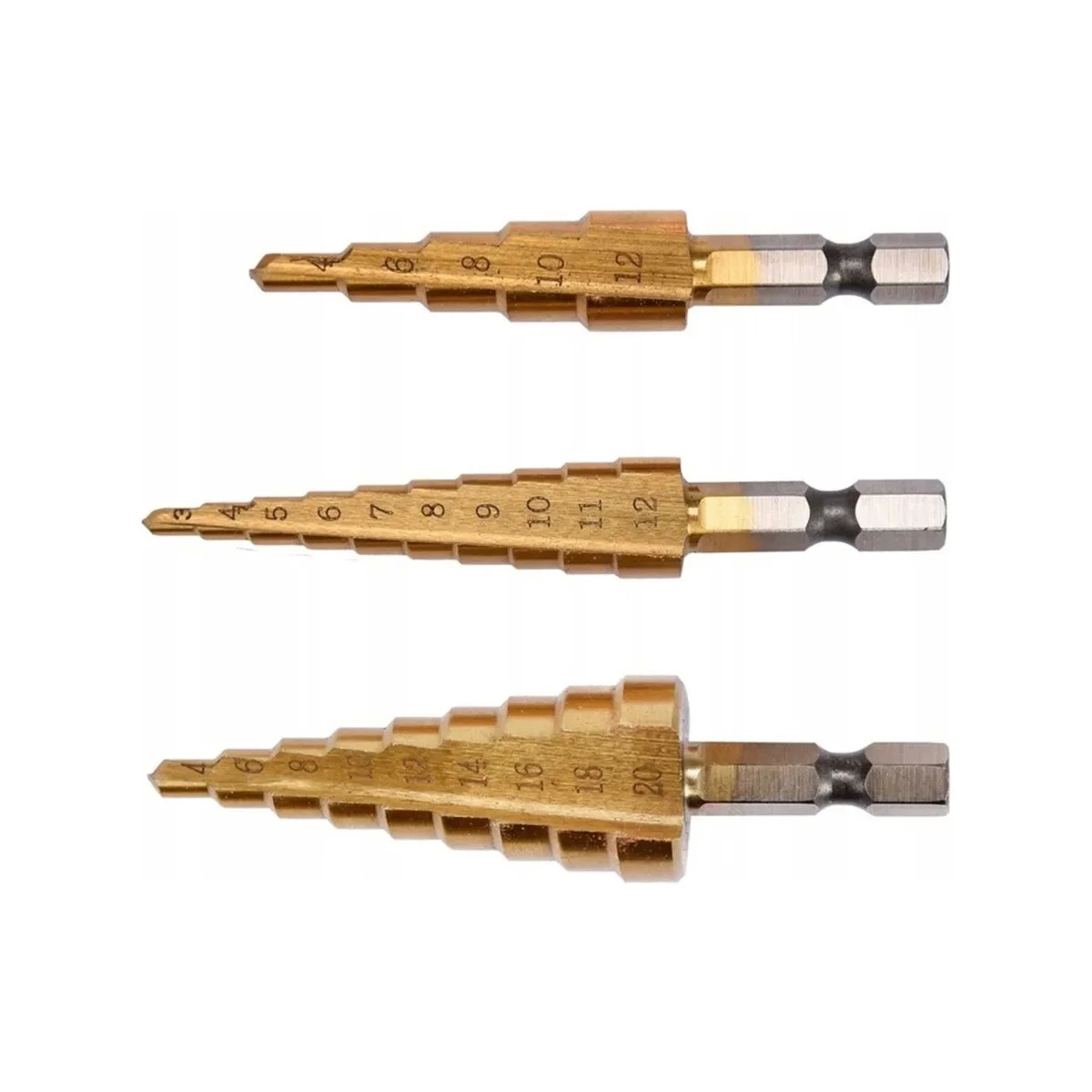 Набор ступенчатых сверл 3-12, 4-12, 4-20 мм 3 предмета YATO YT-44731. Сверла предназначены для сверления высококачественной нержавеющей стали, конструкционной и холоднокатаной стали, цветных металлов, листовой стали, пластика.