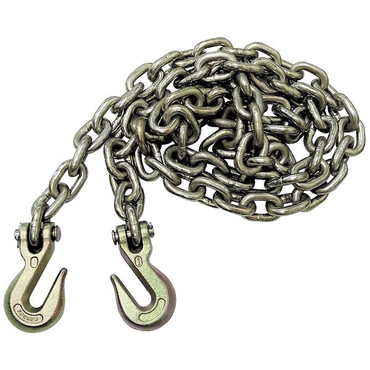 Тяговая цепь с двумя крюками для кузовного ремонта на стапеле. Цепь используется для создания тягового усилия при помощи силовых башен стапеля и позволяет восстанавливать геометрию кузова легковых и грузовых автомобилей.