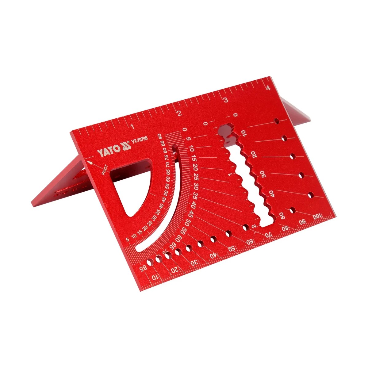 - Позволяет проверять углы 45° и 90°, осуществлять замеры при помощи двух транспортиров, а также наносить разметку, используя специальный шаблон.