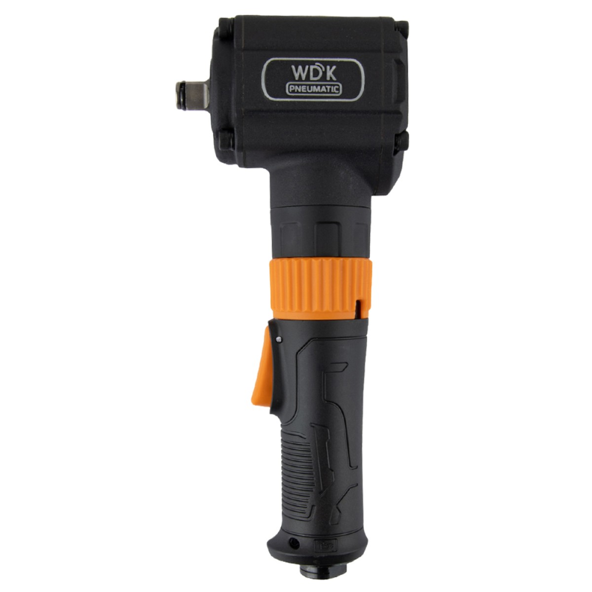 Пневматический ударный угловой гайковерт WiederKraft WDK-20430 с приводным квадратом 1/2″ и максимальным крутящим моментом 700 Нм. Предназначен для проведения монтажных/демонтажных работ с крепежом в труднодоступных местах, работает от источника сжатого воздуха. Используется на СТО, сборочных цехах, производственных предприятиях. Ударный механизм JUMBO HAMMER обеспечивает эффективный демонтаж даже самых закисших гаек и болтов, а также позволяет при небольших габаритах развивать большой крутящий момент за короткий промежуток времени. Легкий и прочный композитный корпус снижает утомляемость пользователя, что особенно заметно при длительном использовании. Угловой ударный гайковерт WDK-20430 имеет четыре режима работы: 3 на закручивание и 1 (полная мощность) на откручивание. Это обеспечивает комфортную работу с резьбовыми соединениями самых разных размеров. Противоскользящая рукоятка препятствует выскальзыванию инструмента из рук во время работы.
