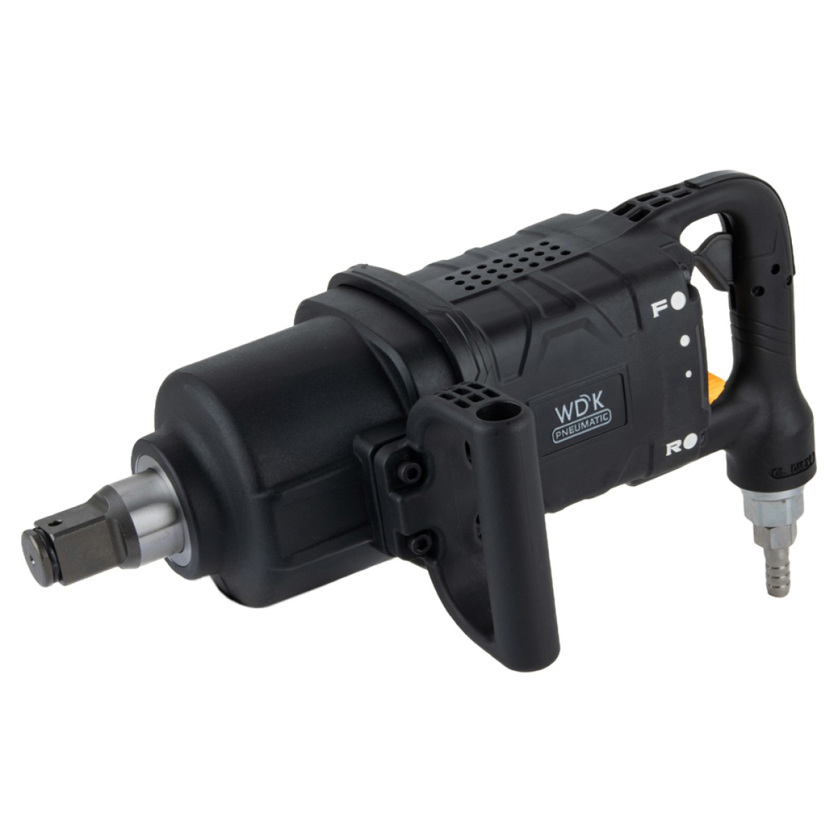 Промышленный пневматический ударный гайковерт WiederKraft WDK-20830S с коротким валом, приводным квадратом 1″ и максимальным крутящим моментом 4000 Нм. Предназначен для работы с резьбовыми соединениями при обслуживании легкового и тяжелого коммерческого транспорта, применяется на промышленных и строительных площадках. Удлиненный приводной вал позволяет работать с резьбовыми соединениями, расположенными в углублениях. Имеет четырехступенчатую регулировку режима прямого и реверсивного вращения для эффективной работы. Ударный механизм Pinless Hammer дает сбалансированный удар, низкий уровень вибрации и высокий крутящий момент. Такой ударный механизм с одним тяжелым бойком предотвращает повреждение болтов и гаек. Воздушный мотор оснащен качественными подшипниками, торцевыми пластинами из кованной стали и тщательно обработанными компонентами для обеспечения плавной работы и максимальной мощности. В комплекте к гайковерту предусмотрена дополнительная рукоятка для удобной работы.