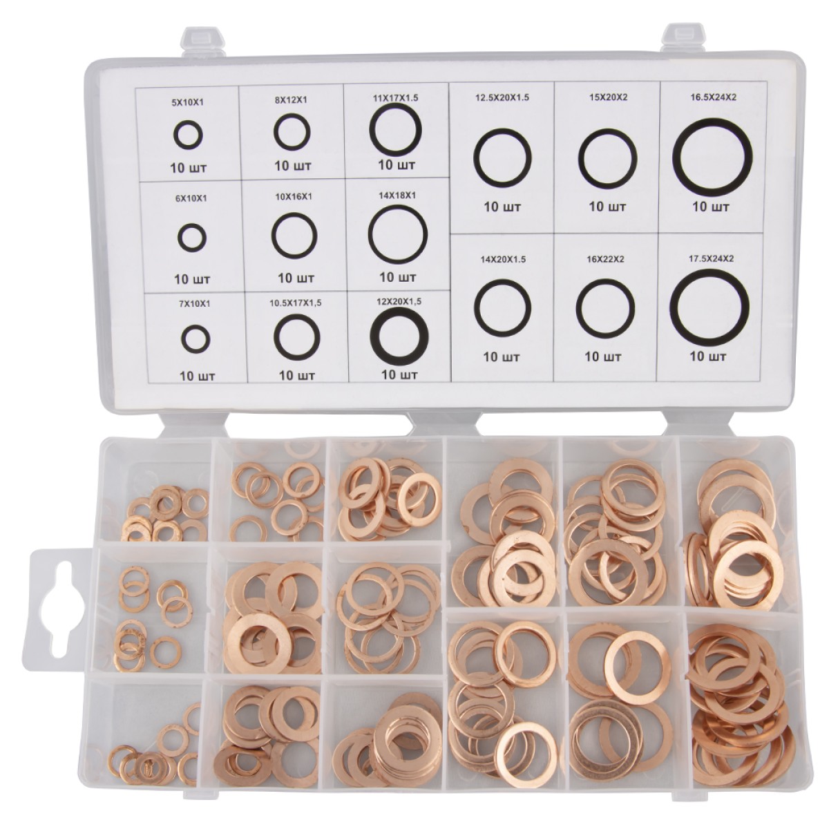 Набор из 15 видов медных шайб в пластиковом кейсе (150 предметов).