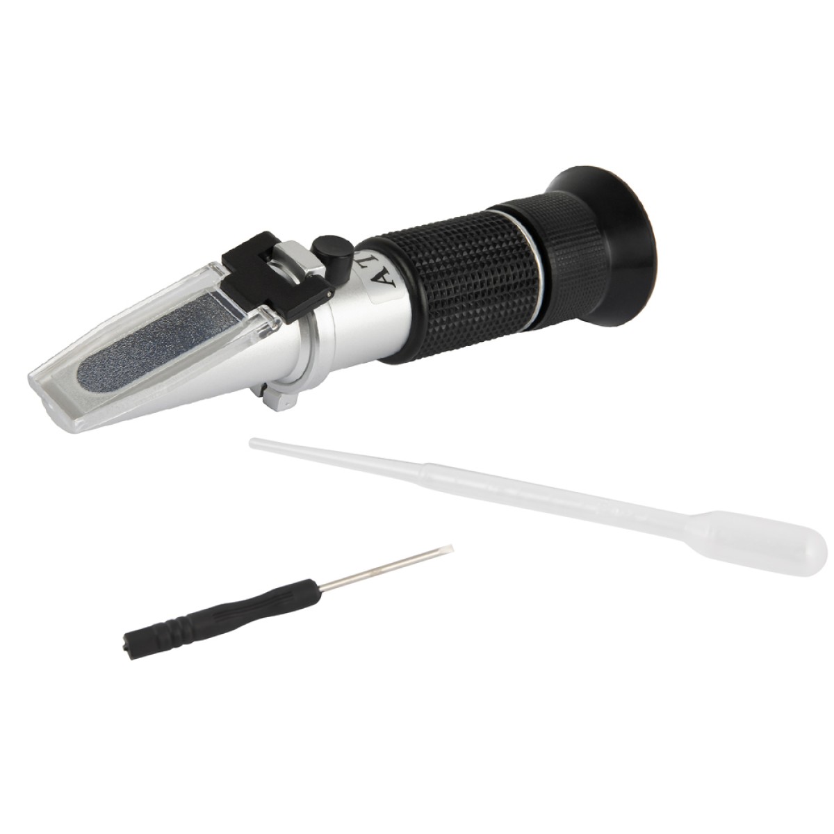 Рефрактометр WiederKraft WDK-214086 — портативный оптический прибор для определения точки замерзания антифриза, теплоносителя, хладоносителя, омывающей жидкости, измерения плотности электролита и концентрации мочевины (AdBlue). Позволяет измерить температуру замерзания антифриза от 0 до -50°С, плотность электролита от 1,1 до 1,4 г/см³, концентрацию мочевины (AdBlue) в диапазоне 5-40%. Также используется для экспресс-анализа температуры кристаллизации. Рефрактометр прост в использовании и имеет высокую точность измерений. Широкий диапазон регулировки фокуса позволяет пользоваться прибором людям с проблемами зрения. Прибор сделан из сплава алюминия и не требует электричества, а также имеет систему автоматической температурной коррекции (АТС), что делает его надежным в любой ситуации.