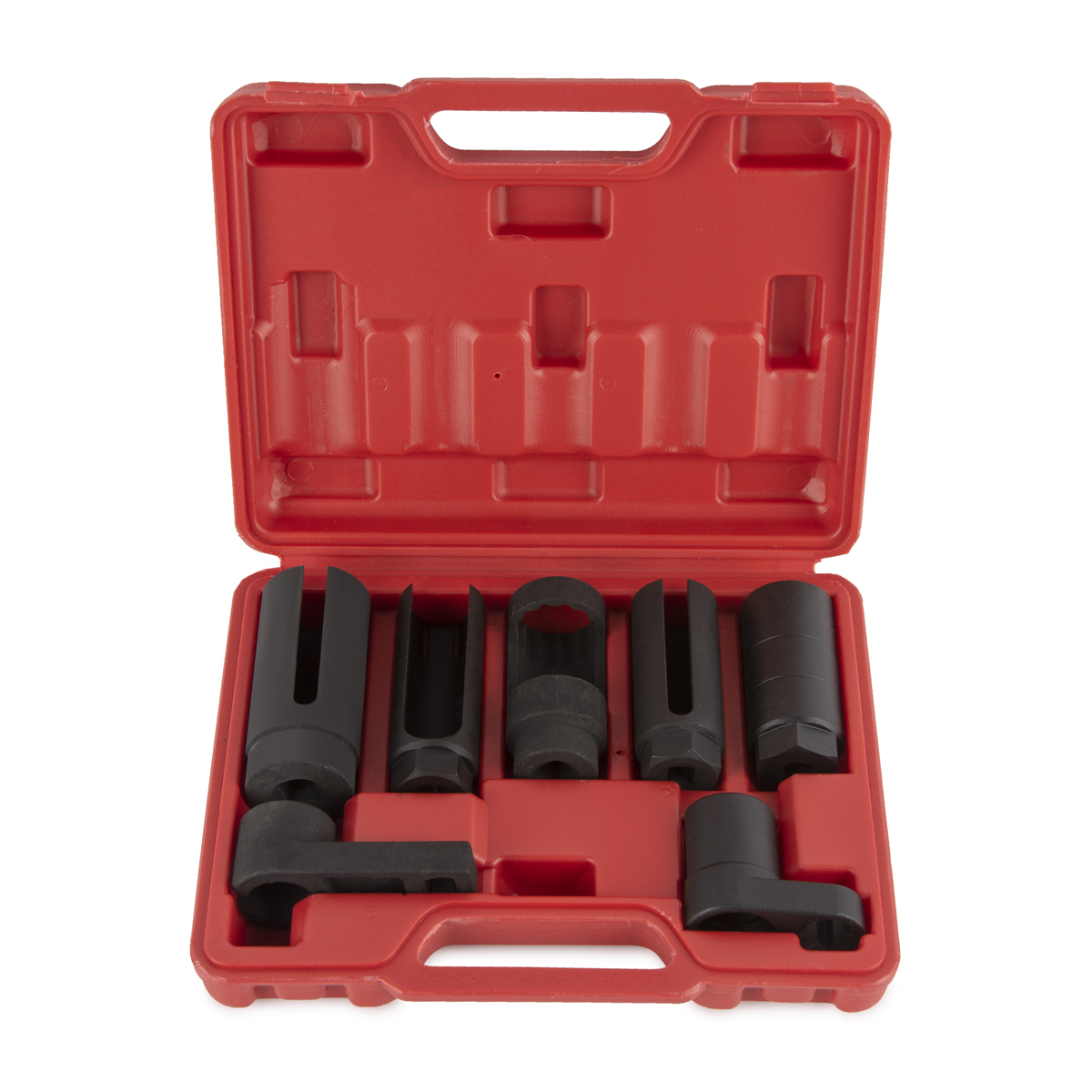 Набор головок для кислородных датчиков, который применяется при обслуживании автомобиля. Набор состоит из 7 головок для установки и снятия кислородных датчиков, лямда-зонда, форсунок. Поставляется в пластиковом кейсе, который оснащен защелками, что предотвращает выпадение приспособлений.