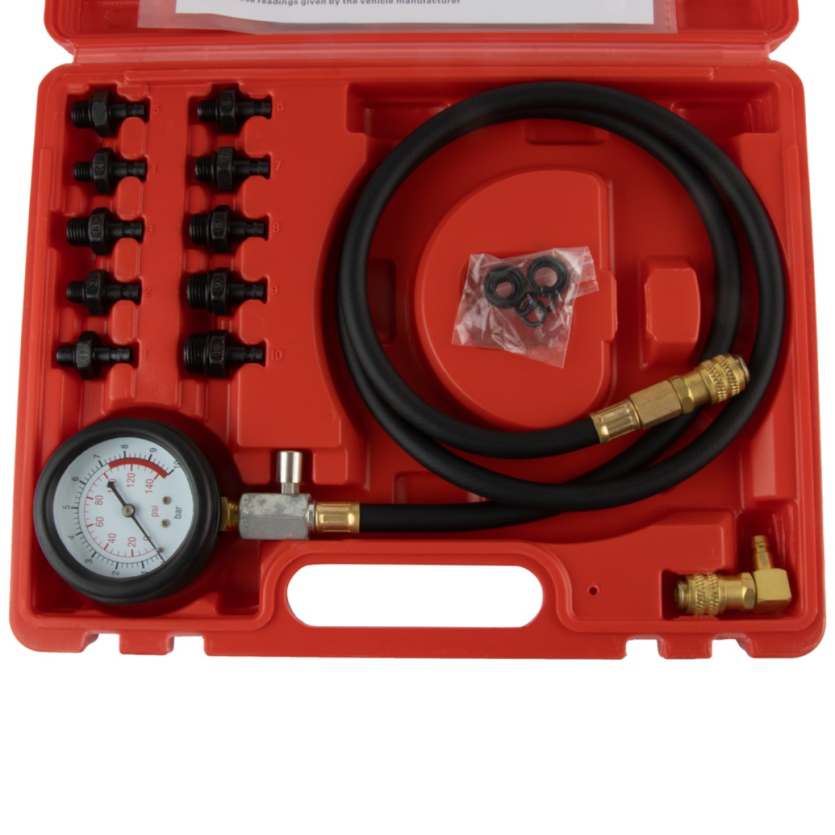 Протестировать уровень давления в двигателе легко можно с помощью тестера WDK-214318 – его широко применяют в автомастерских и на станциях технического обслуживания, чтобы провести проверку состояния двигателя машины. Чтобы срок службы девайса был максимально долгим, тестер давления оборудован резиновой защитой манометра, предохраняющей его от преждевременной поломки. Надежность повышает и шланг с фитингами БРС, который не только просто подключить, но и сложно испортить из-за особой стойкой защиты от масла и бензина.