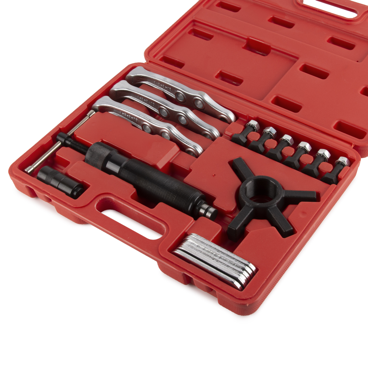 Съемник трехлапый гидравлический WDK-214870 для быстрого демонтажа подшипников, шкивов, втулок и других деталей, имеющих посадку с натягом. Максимальное усилие — 10 тонн.