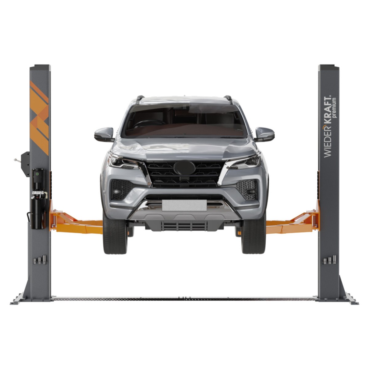 Двухстоечный подъемник с нижней синхронизацией WiederKraft WDK-524N грузоподъемностью 5000 кг. Отличается высокой надежностью конструкции: усиленный профиль подъемных кареток и лап, направляющие каретки из запатентованного полимера, стальные шкивы (сталь 45), стальные тросы 10 мм, толщина металла 6 мм. Управление стопорами с одной колонны экономит время при спуске автомобиля. Наличие концевого ограничителя подъема обеспечивает дополнительную безопасность во время эксплуатации подъемника. Конфигурация подъемника позволяет обслуживать все самые популярные типы автомобилей: от А-класса до микроавтобусов.