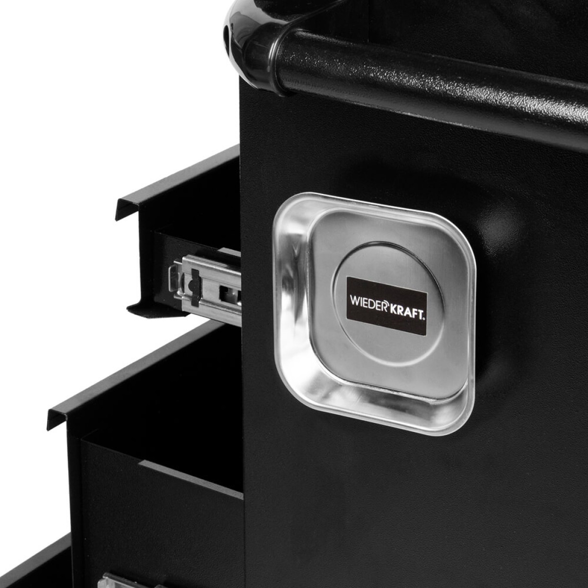 Оснащен мощными магнитами с защитным противоскользящим покрытием, что позволяет крепить лоток на любую поверхность. Например, на кузов автомобиля при выполнении автосервисных и авторемонтных работ.
