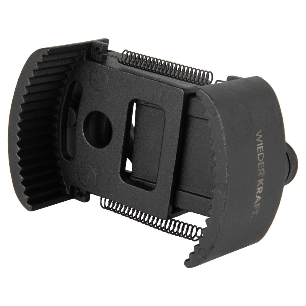 Ключ для масляного фильтра с полукруглыми захватами WiederKraft WDK-65398 с диапазоном захвата от 80 до 115 мм. Зубчатые выступы на рабочих поверхностях съёмника надёжно фиксируют фильтр во время работы. Защитное фосфатированое покрытие защищает приспособление от коррозии. Данный инструмент обеспечивает возможность безопасного снятия или установки фильтра без повреждения деталей и подходит для большинства марок транспортных средств. Модель соответствует техническим требованиям всех производителей автомобилей. Приспособление используется вместе с такими инструментами, как вороток, трещотка или динамометрический ключ.