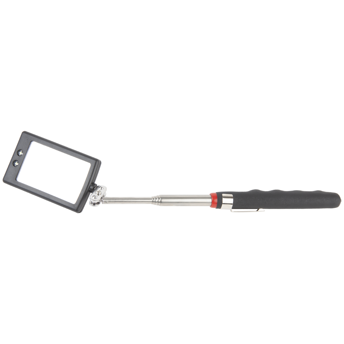 Смотровое прямоугольное зеркало на телескопической рукоятке со светодиодной подсветкой (2 светодиода). Применяется для осмотра труднодоступных мест.