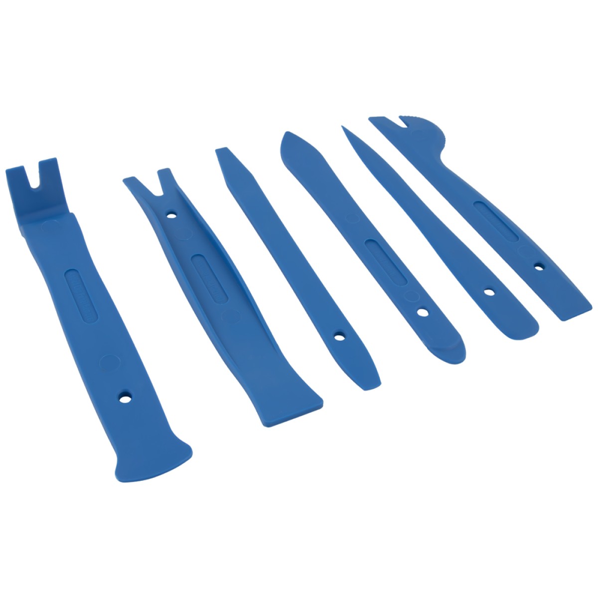 Набор из шести съемников панелей. Удобные и качественные приспособления, которые облегчают демонтаж элементов салона автомобиля и позволяют проводить эти работы без повреждений. В комплекте 6 съемников.