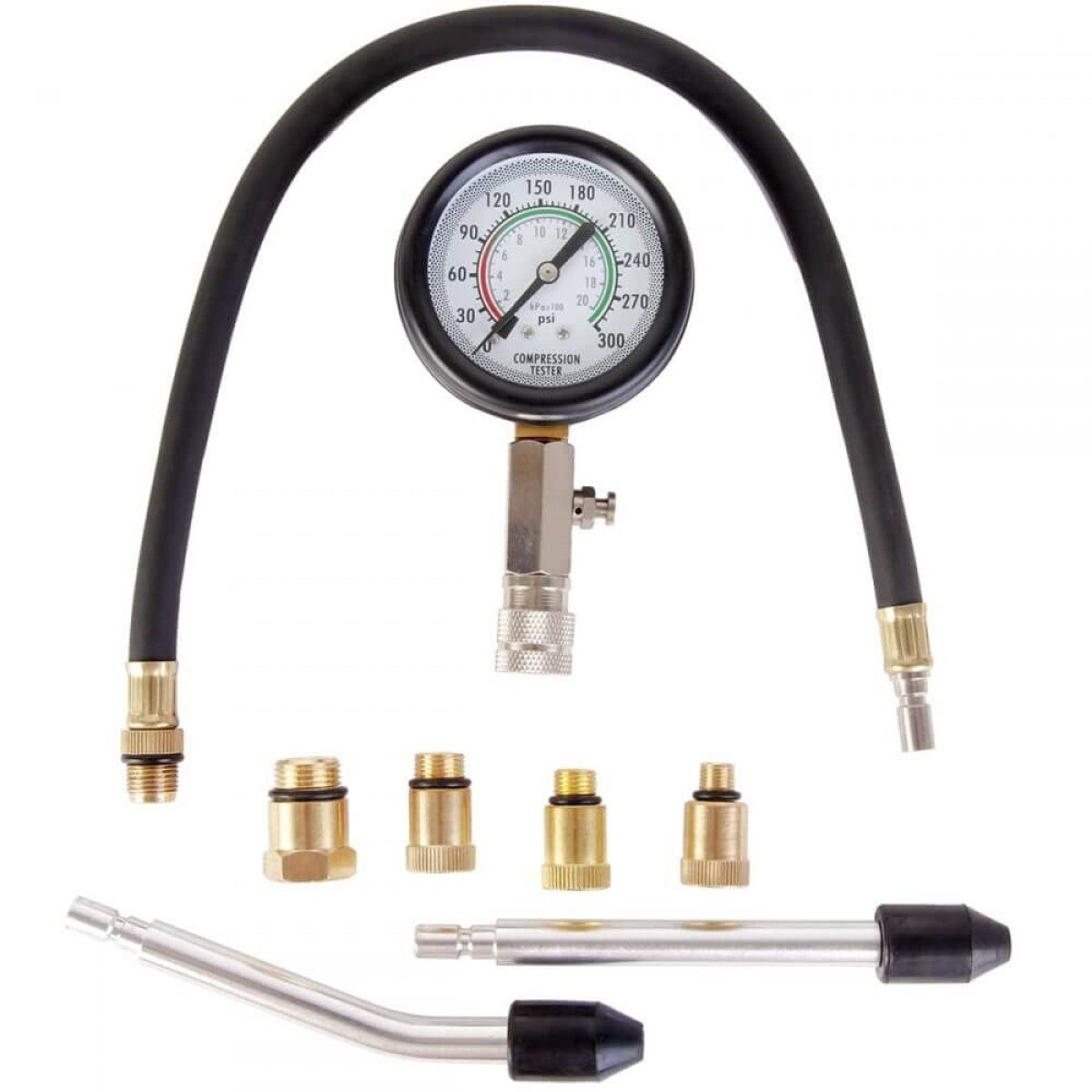 Компрессометр используется для проверки компрессии двигателях в диапазоне 0-20 бар (0-300 psi).