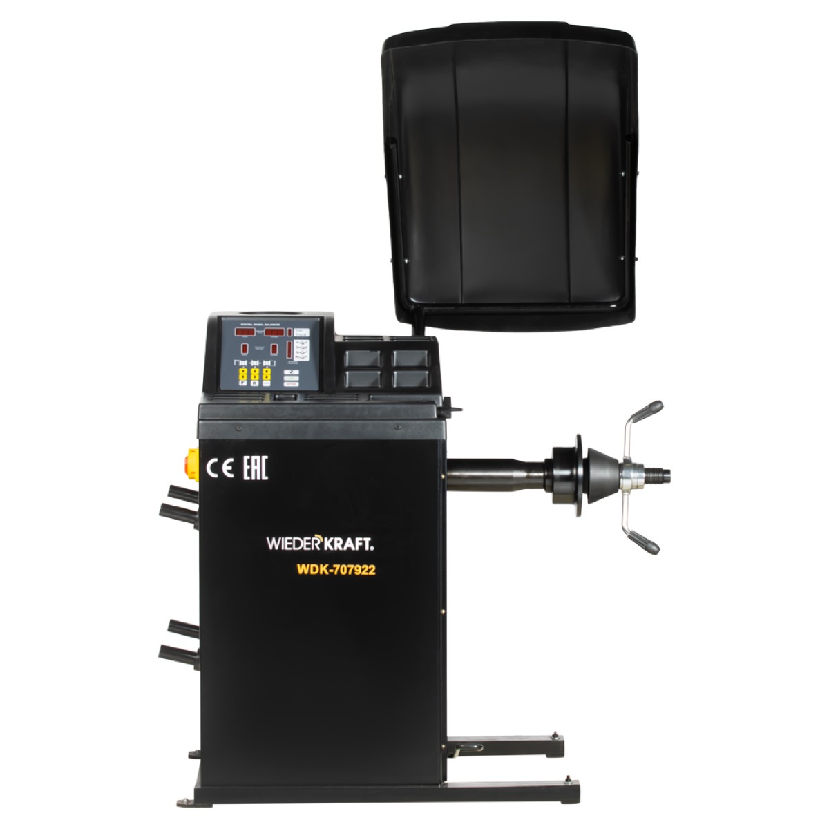 Балансировочный станок WiederKraft WDK-707922 для обслуживания грузовых автомобилей с максимальным диаметром колеса до 1200 мм и весом не превышающем 150 кг. Предназначен для измерений дисбаланса и балансировки колес грузовых автомобилей, внедорожников и микроавтобусов с дисками диаметром от 13 до 25 дюймов. Работает в пяти режимах: ALU-1, ALU-2, ALU-3, DYN, ST. Имеет 3 программы для балансировки легкосплавных дисков автомобилей с возможностью установки адгезивных грузов, а также отдельные группы кнопок для быстрой настройки параметров. Механическая линейка измерения дистанции до колеса с четкой шкалой для удобства использования. Данная модель подключается к сети напряжением 220 вольт. В конструкции балансировочного стенда WDK-707922 предусмотрена ножная педаль тормоза для быстрой остановки колеса. Многочисленные ячейки позволяют держать оснастку и рабочий инструмент всегда под рукой. Пневматическое подъемное устройство грузоподъемностью до 300 кг облегчает процесс установки колеса на вал. Защитный кожух предотвращает попадание различных мелких частиц и грязи, оставшихся на покрышке колеса, в оператора. Процесс балансировки занимает короткое время, что способствует высокой производительности данного станка.