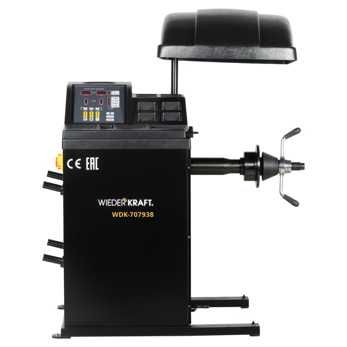 Балансировочный станок WiederKraft WDK-707938 для обслуживания грузовых автомобилей с максимальным диаметром колеса до 1200 мм и весом не превышающем 150 кг. Предназначен для измерений дисбаланса и балансировки колес грузовых автомобилей, внедорожников и микроавтобусов с дисками диаметром от 13 до 25 дюймов. Работает в пяти режимах: ALU-1, ALU-2, ALU-3, DYN, ST. Имеет 3 программы для балансировки легкосплавных дисков автомобилей с возможностью установки адгезивных грузов, а также отдельные группы кнопок для быстрой настройки параметров. Механическая линейка измерения дистанции до колеса с четкой шкалой для удобства использования. Данная модель подключается к сети напряжением 380 вольт. В конструкции балансировочного стенда WDK-707938 предусмотрена ножная педаль тормоза для быстрой остановки колеса. Многочисленные ячейки позволяют держать оснастку и рабочий инструмент всегда под рукой. Пневматическое подъемное устройство грузоподъемностью до 300 кг облегчает процесс установки колеса на вал. Защитный кожух предотвращает попадание различных мелких частиц и грязи, оставшихся на покрышке колеса, в оператора. Процесс балансировки занимает короткое время, что способствует высокой производительности данного станка.