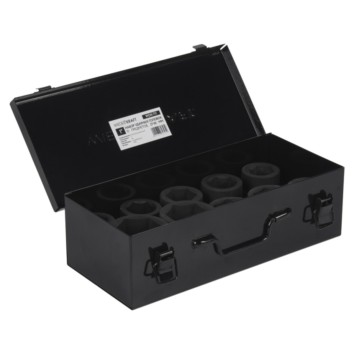 Набор ударных головок WiederKraft WDK-711 для монтажа/демонтажа крепежных элементов с помощью ударного гайковерта. Набор включает в себя десять головок (27, 30, 32, 33, 34, 36, 38, 41, 46 и 50 мм) с посадочным квадратом 1″ и 6-гранным рабочим профилем. Все ударные головки выполнены из высококачественной хром-молибденовой стали 42 CrMo. Включения хрома и молибдена делают изделие прочным, устойчивым к нагрузкам и деформациям. Данный набор применяется при проведении слесарных работ для демонтажа и монтажа резьбовых соединений с помощью инструмента ударного действия (пневматические и электрические гайковерты). Головки имеют шестигранный профиль с технологией нагрузки вне угла, которая уменьшает скругление граней крепежа даже после многократного использования. Каждая головка аккуратно уложена в металлическом кейсе с защелкой из нержавейки, который обеспечивает безопасное хранение и удобную транспортировку набора.