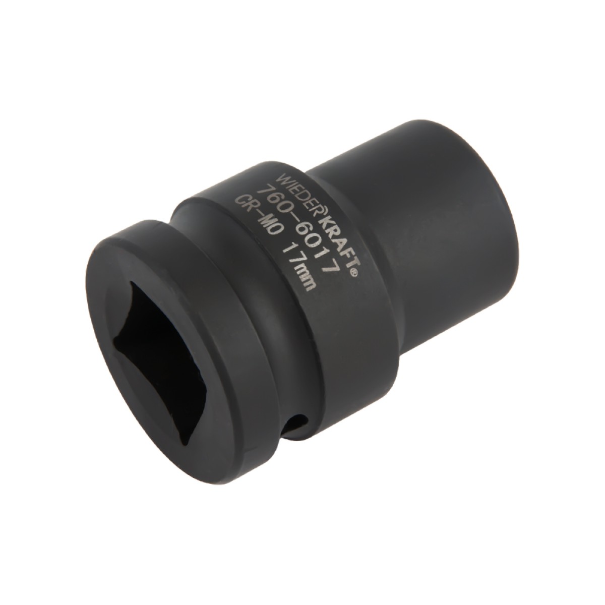 Ударная головка WiederKraft WDK-710-6017 (17 мм) с посадочным квадратом 3/4″ и 6-гранным рабочим профилем. Выполнена из высококачественной хром-молибденовой стали 42 CrMo. Включения хрома и молибдена делают изделие прочным, устойчивым к нагрузкам и деформациям. Применяется при проведении слесарных работ для демонтажа и монтажа резьбовых соединений с помощью инструмента ударного действия (пневматические и электрические гайковерты). Головка устойчива к динамическим нагрузкам и обладает повышенными прочностными характеристиками.