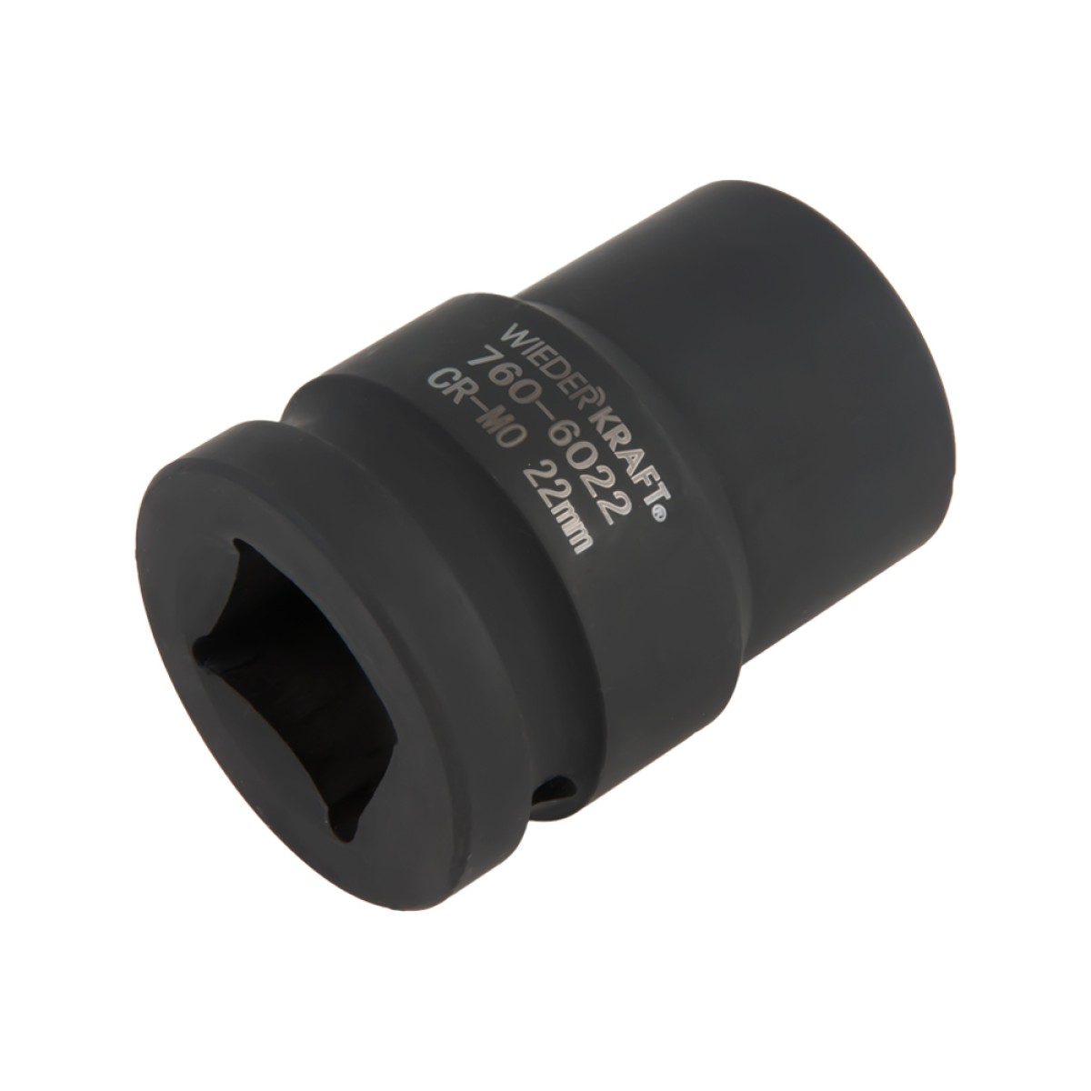 Ударная головка WiederKraft WDK-760-6022 (22 мм) с посадочным квадратом 3/4″ и 6-гранным рабочим профилем. Выполнена из высококачественной хром-молибденовой стали 42 CrMo. Включения хрома и молибдена делают изделие прочным, устойчивым к нагрузкам и деформациям. Применяется при проведении слесарных работ для демонтажа и монтажа резьбовых соединений с помощью инструмента ударного действия (пневматические и электрические гайковерты). Головка устойчива к динамическим нагрузкам и обладает повышенными прочностными характеристиками.