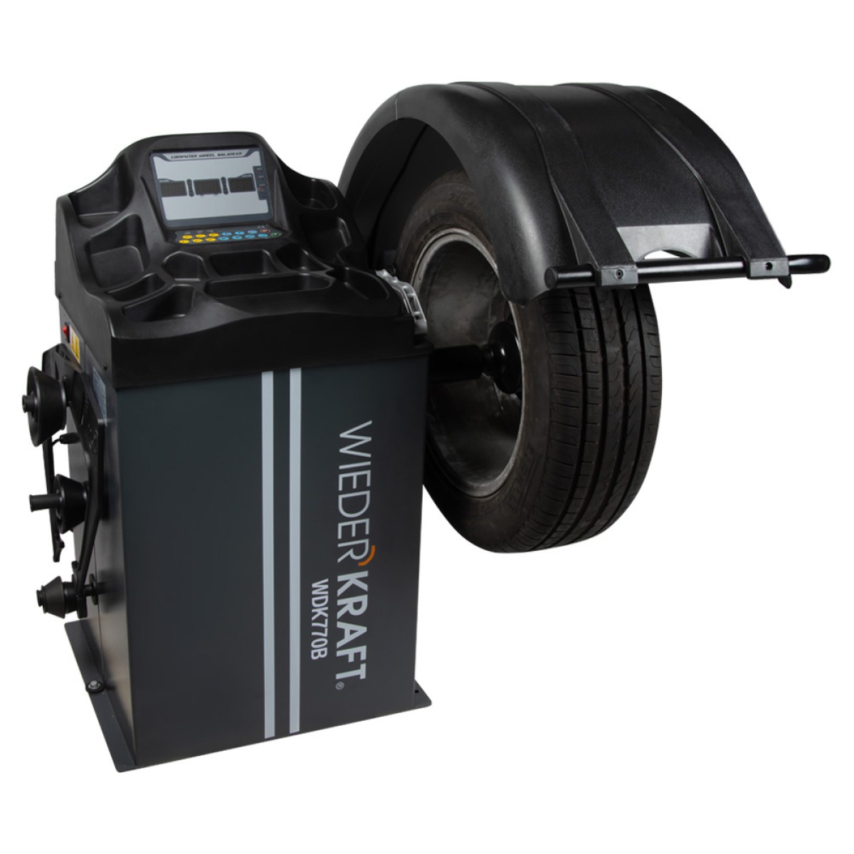 Балансировочный станок WiederKraft WDK-770B для обслуживания легкового и легкого коммерческого транспорта с максимальным диаметром колёс до 1000 мм. Предназначен для измерения и устранения дисбаланса у колёс с дисками диаметром от 10 до 24 дюймов в шиномонтажных мастерских, автосервисных предприятиях и станциях технического обслуживания. Наличие электронной линейки с измерением двух параметров (расстояние и диаметр диска) и возможность запуска цикла балансировки закрытием кожуха обеспечат скорость работы, что особенно важно в шиномонтажный сезон. Широкое опорное основание, специальная конструкция виброузла и вал с увеличенным диаметром 40 мм гарантируют надежность оборудования и высокую точность балансировки ±1 г. Защитный кожух, выполненный из высокопрочного пластика, защитит оператора от мелких камней и грязи при вращении колеса. WDK-770B работает от бытовой сети 220 вольт и может быть использован даже в небольших мастерских, где отсутствует трёхфазное подключение. Комплектация балансировочного стенда позволит сразу приступить к работе с большинством видов колёс и включает балансировочные клещи, конусы, кронциркуль, быстрозажимную гайку и грузики.
