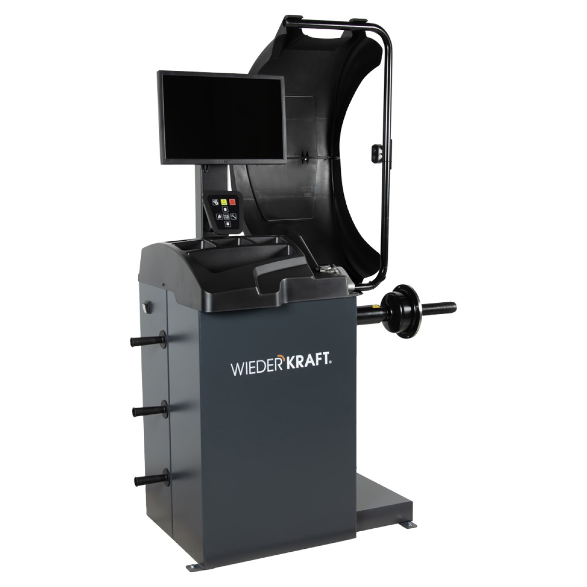 Балансировочный станок WiederKraft WDK-777B для обслуживания легкового и малого коммерческого транспорта с максимальным диаметром колёс до 1000 мм. Предназначен для измерения и устранения дисбаланса у колёс с дисками диаметром от 10 до 24 дюймов в шиномонтажных мастерских, автосервисных предприятиях и станциях технического обслуживания. Оснащен информативным LCD дисплеем с трехмерной визуализацией рабочего процесса. Наличие электронной линейки с измерением двух параметров (расстояние и диаметр диска), ультразвукового датчика для измерения ширины колес, а также возможность запуска цикла балансировки закрытием кожуха обеспечат скорость работы, что особенно важно в шиномонтажный сезон. Также, данный станок оснащен лазерным индикатором линии установки грузиков. Широкое опорное основание, специальная конструкция виброузла и вал с увеличенным диаметром 40 мм гарантируют надежность оборудования и высокую точность балансировки ±1 г. Защитный кожух, выполненный из высокопрочного пластика, защитит оператора от мелких камней и грязи при вращении колеса. WDK-777B работает от бытовой сети 220 вольт и может быть использован даже в небольших мастерских, где отсутствует трёхфазное подключение. Комплектация балансировочного стенда позволит сразу приступить к работе с большинством видов колёс и включает балансировочные клещи, конусы, кронциркуль, прижимную чашу, быстрозажимную гайку и эталонный грузик для самокалибровки.