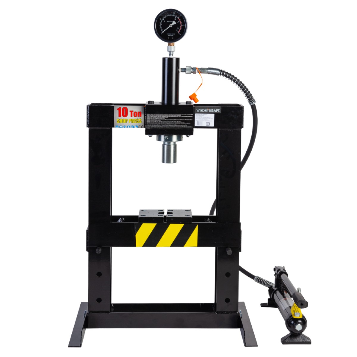 Настольный пневмогидравлический пресс, который развивает усилие в 10 тонн.