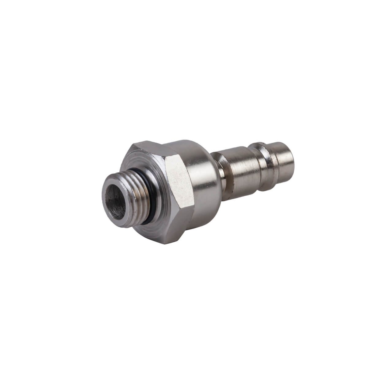 Пневматическое быстроразъёмное соединение типа «папа» c внешней резьбой и подвижным шарниром. Применяется для подключения пневматического инструмента и оборудования, соединения различных элементов пневмосистем. С одной стороны фитинг имеет быстроразъёмное соединение (фитинг, быстросъём) типа «папа», с другой – внешнюю резьбу М 1/4”. Разъем «папа» подсоединяется к подходящему к нему разъему типа «мама».
