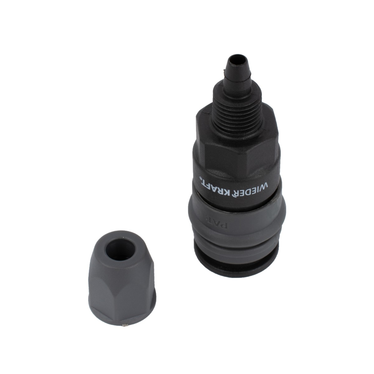 Пневматическое композитное быстроразъёмное соединение с креплением шланга обжимной гайкой. Предназначено для подключения шланга диаметром 6,5 х 10 мм.