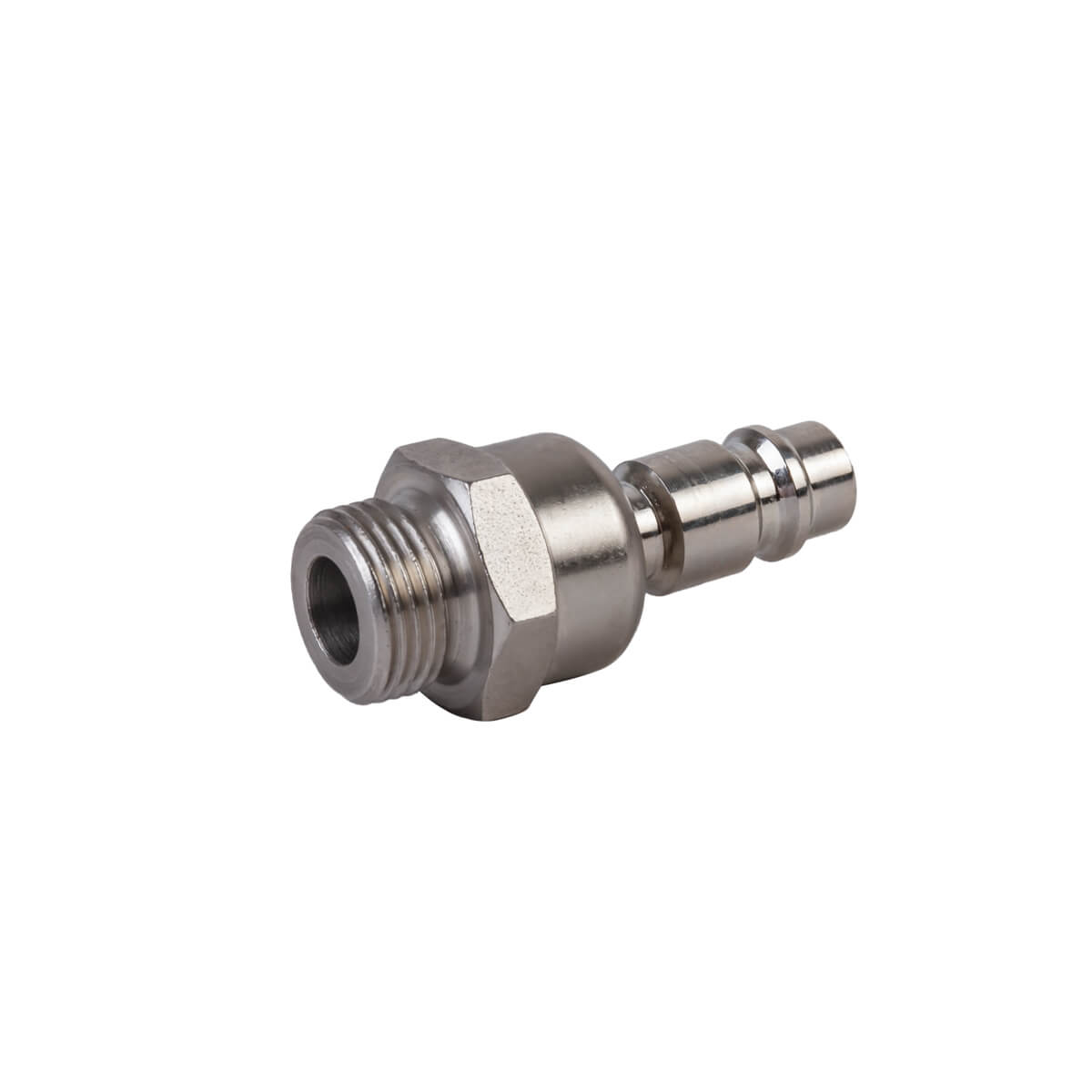 Пневматическое быстроразъёмное соединение типа «папа» c внешней резьбой и подвижным шарниром. Применяется для подключения пневматического инструмента и оборудования, соединения различных элементов одной стороны фитинг имеет быстроразъёмное соединение (фитинг, быстросъём) типа «папа», с другой – внешнюю резьбу М 3/8”. Разъем «папа» подсоединяется к подходящему к нему разъему типа «мама».